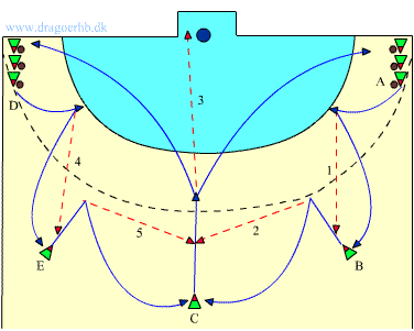 E ومن هنا يستمر التمرين ولكن من الجانب الأخر من الملعب.