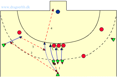 joueur externe fait un bloc de côté en plus. Le tireur passe à l’ailier qui