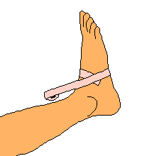 | Commencez sur l'extérieur du pied. | Menez la bande sous la voûte plantaire et passez au dessus en croisant le point de départ afin de bloquer ce point. | Menez la bande derrière et au-dessus de l'articulation de la cheville. |