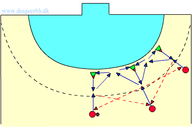 Les trois attaquants s’engagent en piston contre la défense et passent la balle