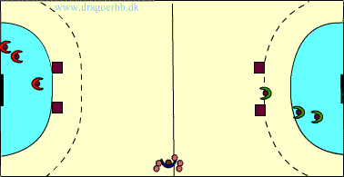 On place 2 plots à 2m l’un de l’autre sur chaque ligne des 9m et on fait 2 équipes.